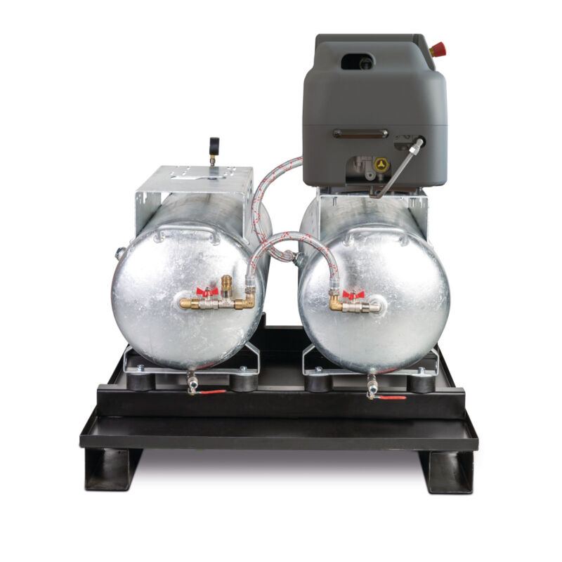 - Dois depósitos de ar comprimido de 100 litros prontos a montar numa palete de segurança