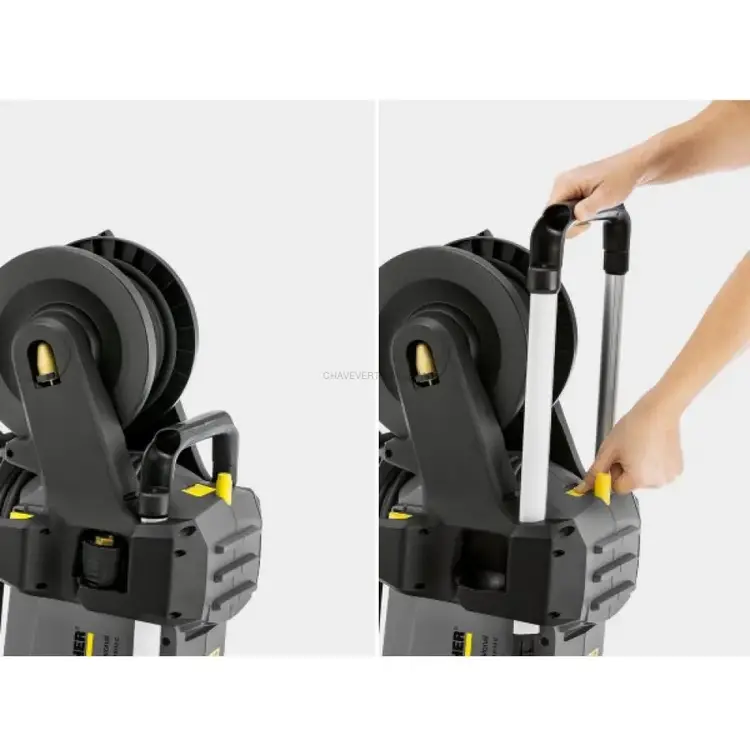 ✓ O tambor integrado inclui 15 metros de mangueira para um grande raio de ação.