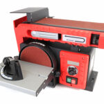 Lixadora de bancada combinando as funções circular e de cinta. Vem equipada com um prático display LCD.