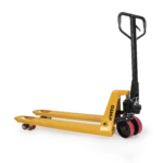 Porta-paletes robusto com capacidade máxima de 2,5 toneladas, ideal para manuseamento de cargas pesadas. Com garfos de 110 cm de comprimento e 54 cm de largura, este equipamento permite uma elevação de até 20 cm. As rodas maciças em nylon asseguram maior durabilidade e uma movimentação suave. A estrutura reforçada e as dimensões de 550 x 1100 mm proporcionam eficiência no transporte em armazéns e outras áreas logísticas.